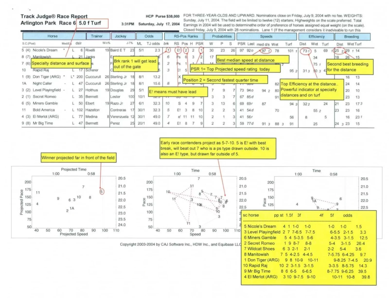 Track Judge® handicaps by combining Running Style, Pace and Speed with Experience, Breeding and the human factors – Trainer and Jockey.